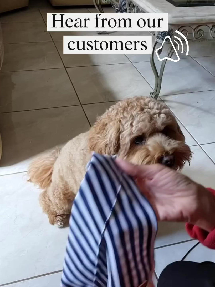 In our first year of starting PUPSTYLE, we offered both a tie-up bandana style and one that thread over the collar. Our customers loved the tie-up style because it was quick and easy to take on and off, but they would often come loose and untie themselves.